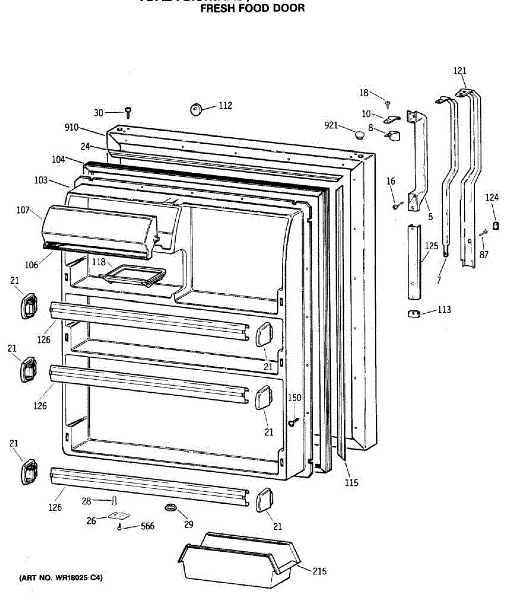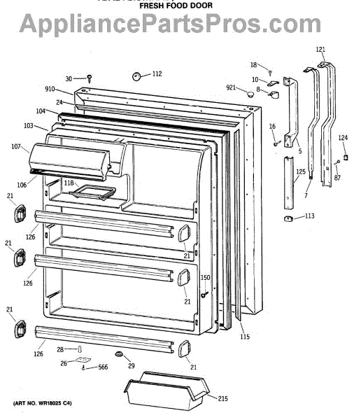 Seals your refrigerator's fresh food door to maintain temperature and prevent air leaks. Replace if you notice condensation, mold, or warm spots inside.