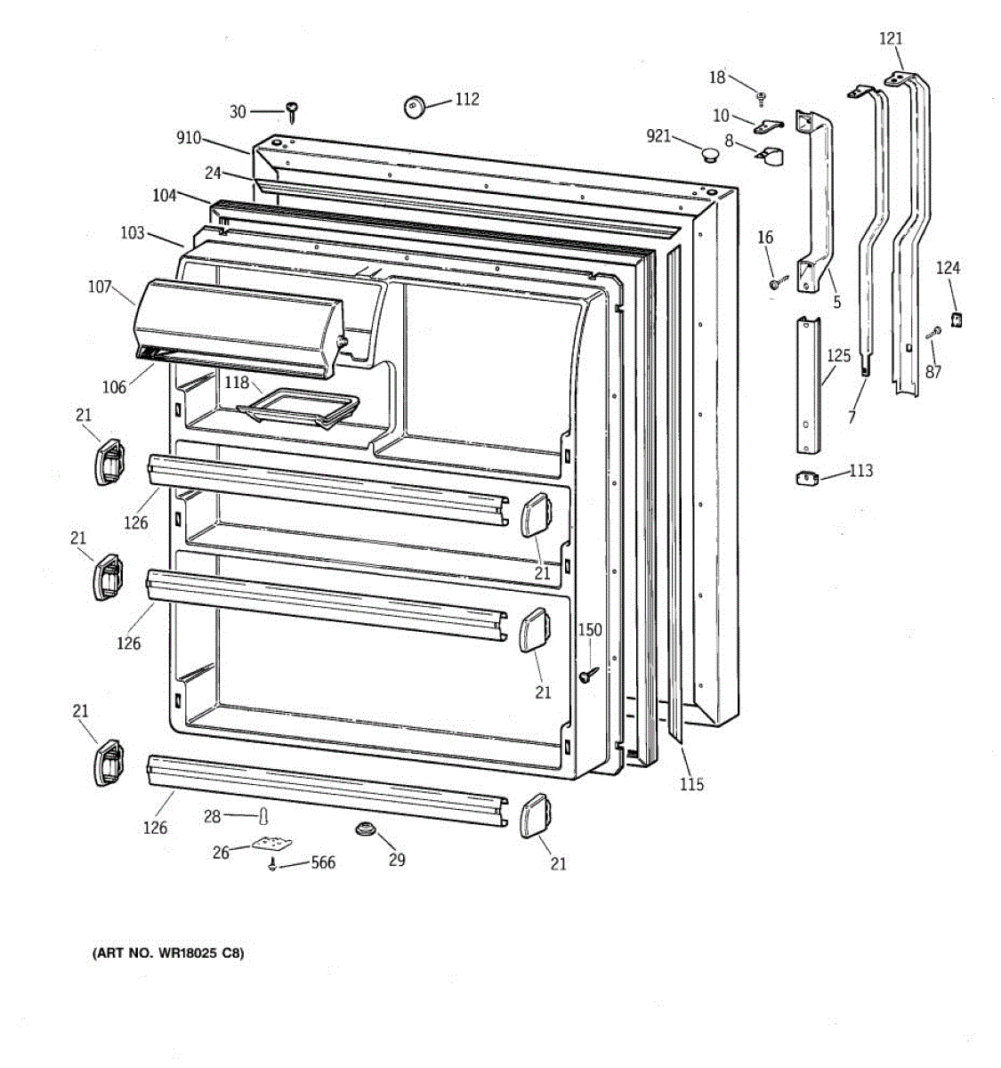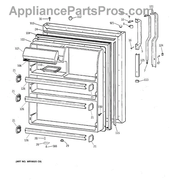Seals your refrigerator's fresh food door to maintain temperature and prevent air leaks. Replace if you notice condensation, mold, or warm spots inside.
