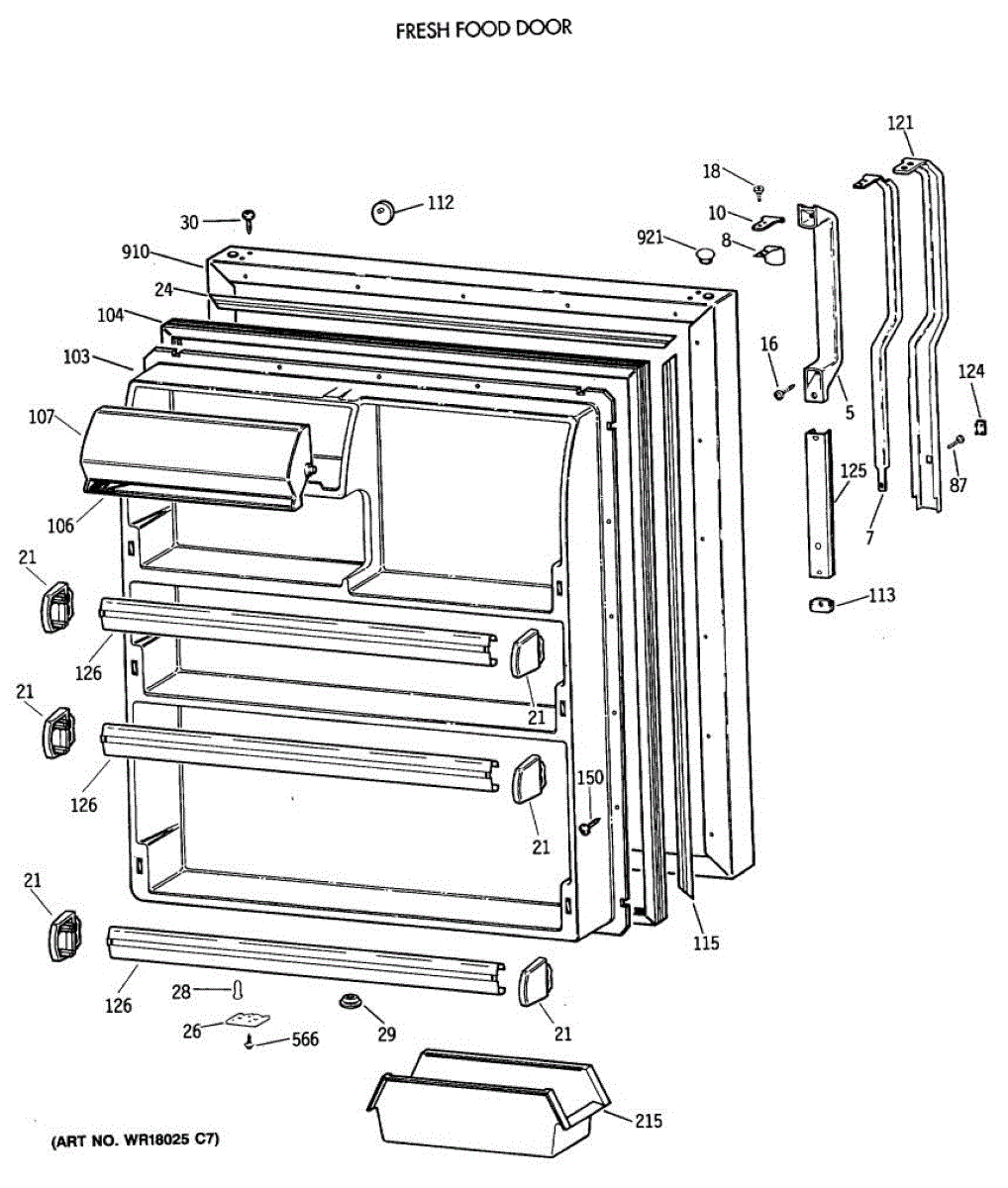 The Fresh Food Door Gasket is an OEM part for GE refrigerators. It seals the perimeter of the refrigerator's fresh food door, maintaining the internal temperature by preventing warm air from entering and cold air from escaping. The gasket measures approximately 39-3/4 inches by 29-3/4 inches.