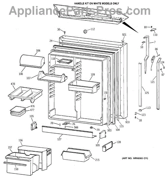 White front rail for refrigerator door shelves. Replaces cracked, broken, or missing shelf trim pieces. Installs on door bin to secure items in place.