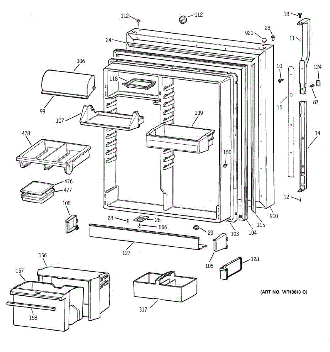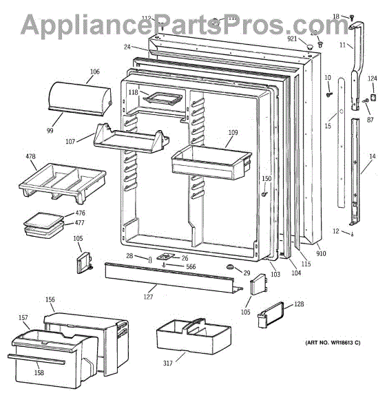 Seals your refrigerator's fresh food door to maintain temperature and prevent air leaks. Replace if you notice condensation, mold, or warm spots inside.