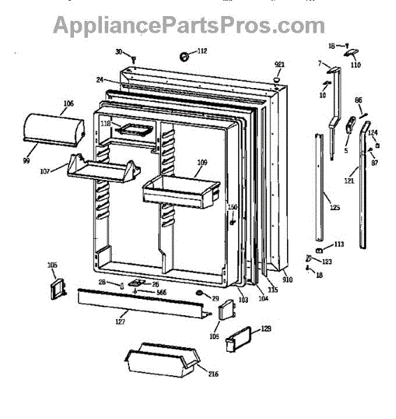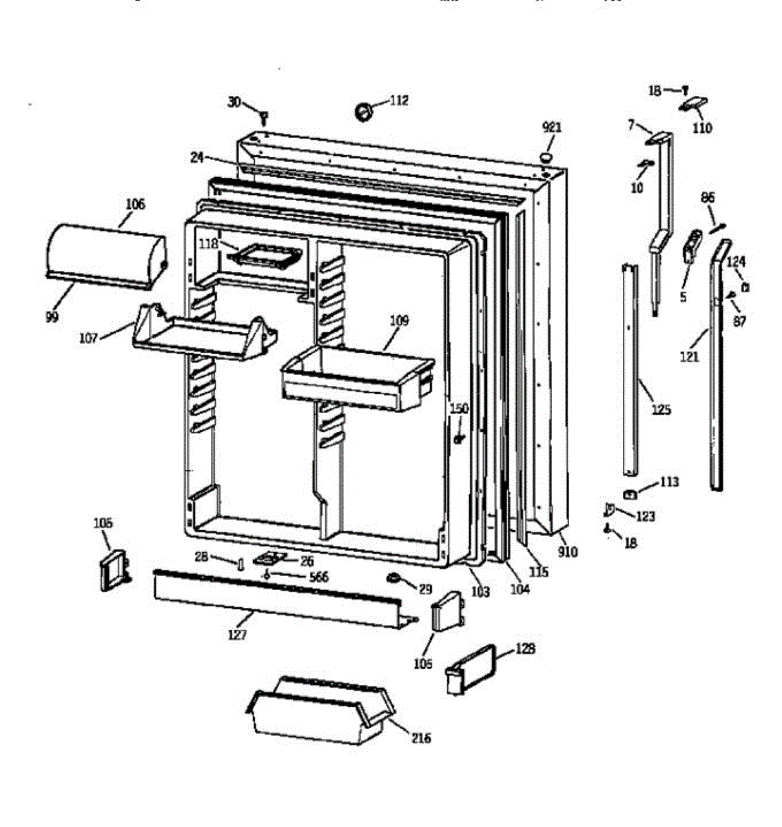 Parts for Ge TBX22QAHERWW: Fresh Food Door Parts