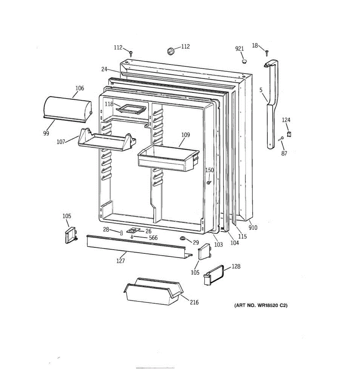 Seals your refrigerator's fresh food door to maintain temperature and prevent air leaks. Replace if you notice condensation, mold, or warm spots inside.