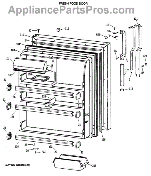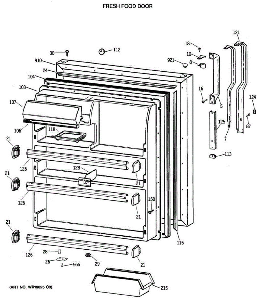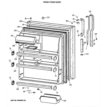 Seals the fresh food door to keep cold air in and prevent temperature loss. Replace if cracked, warped, or loose to restore efficiency. Confirm fit.