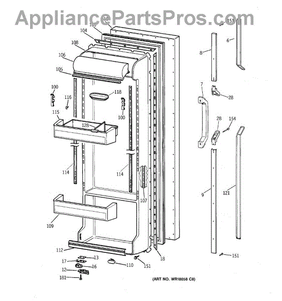 Parts for Ge TFG22PRXCWW: 02 - Fresh Food Door Parts