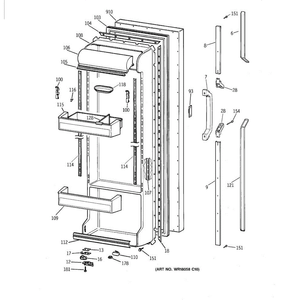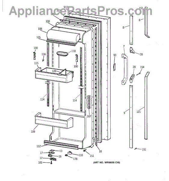 Parts for Ge TFG24PEXDWH: 02 - Fresh Food Door Parts
