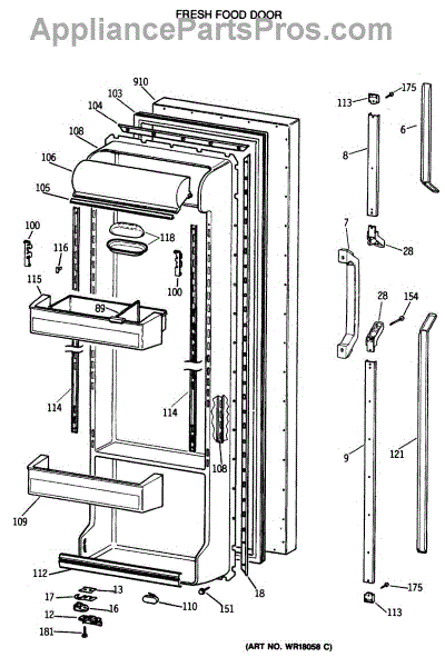 Parts for Ge TFG24PRTCBB: 02 - Fresh Food Door Parts