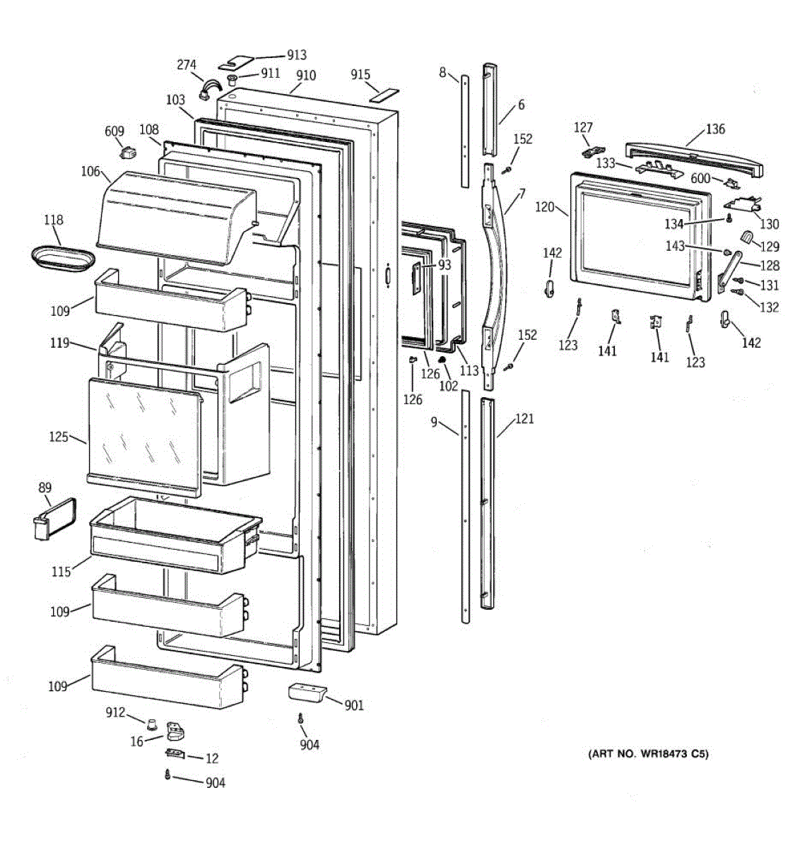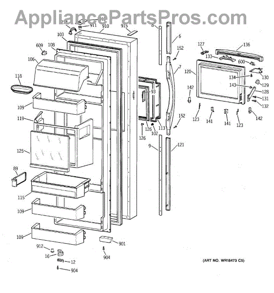 Parts for Ge TFG28PFBBWW: 02 - Fresh Food Door Parts