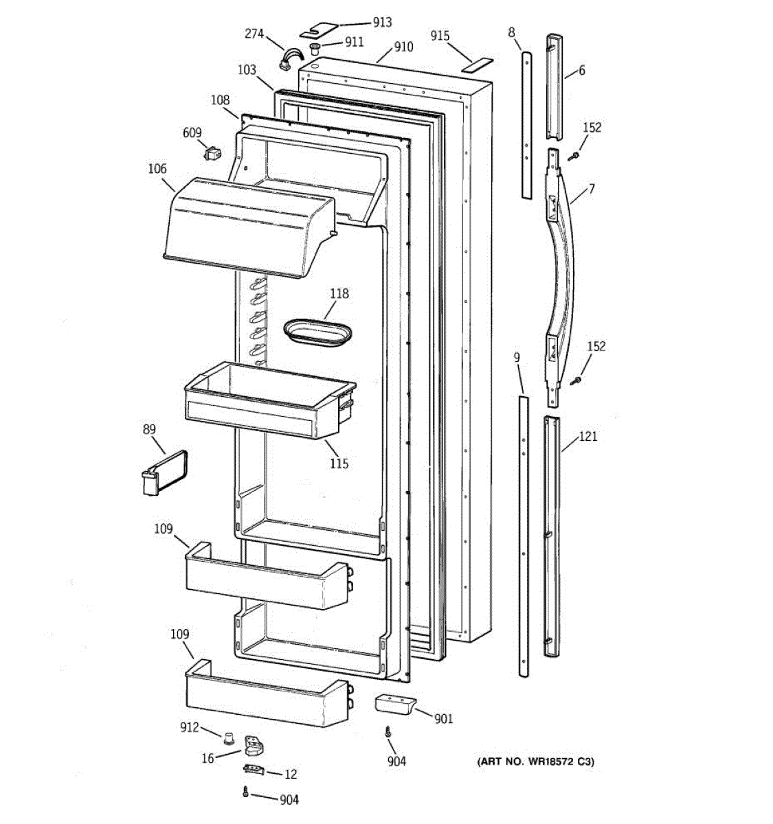 Replacement tail piece for refrigerator door handles. Installs at the end of the handle assembly. Order if your original is cracked, broken, or missing.