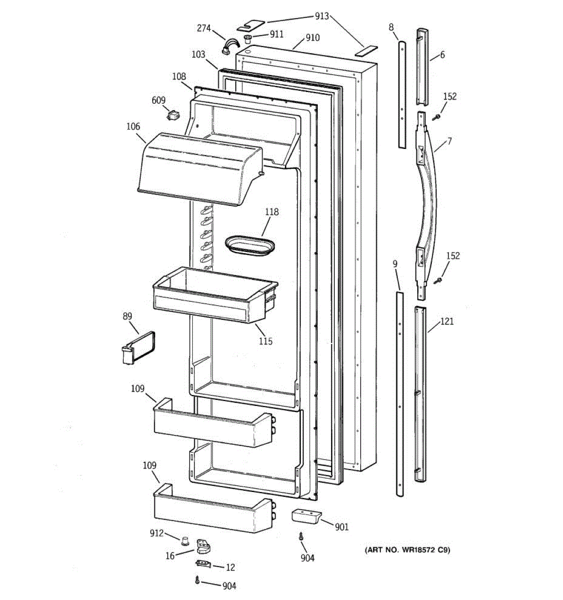 Parts for Ge TFG28PRCEWW: 02 - Fresh Food Door Parts