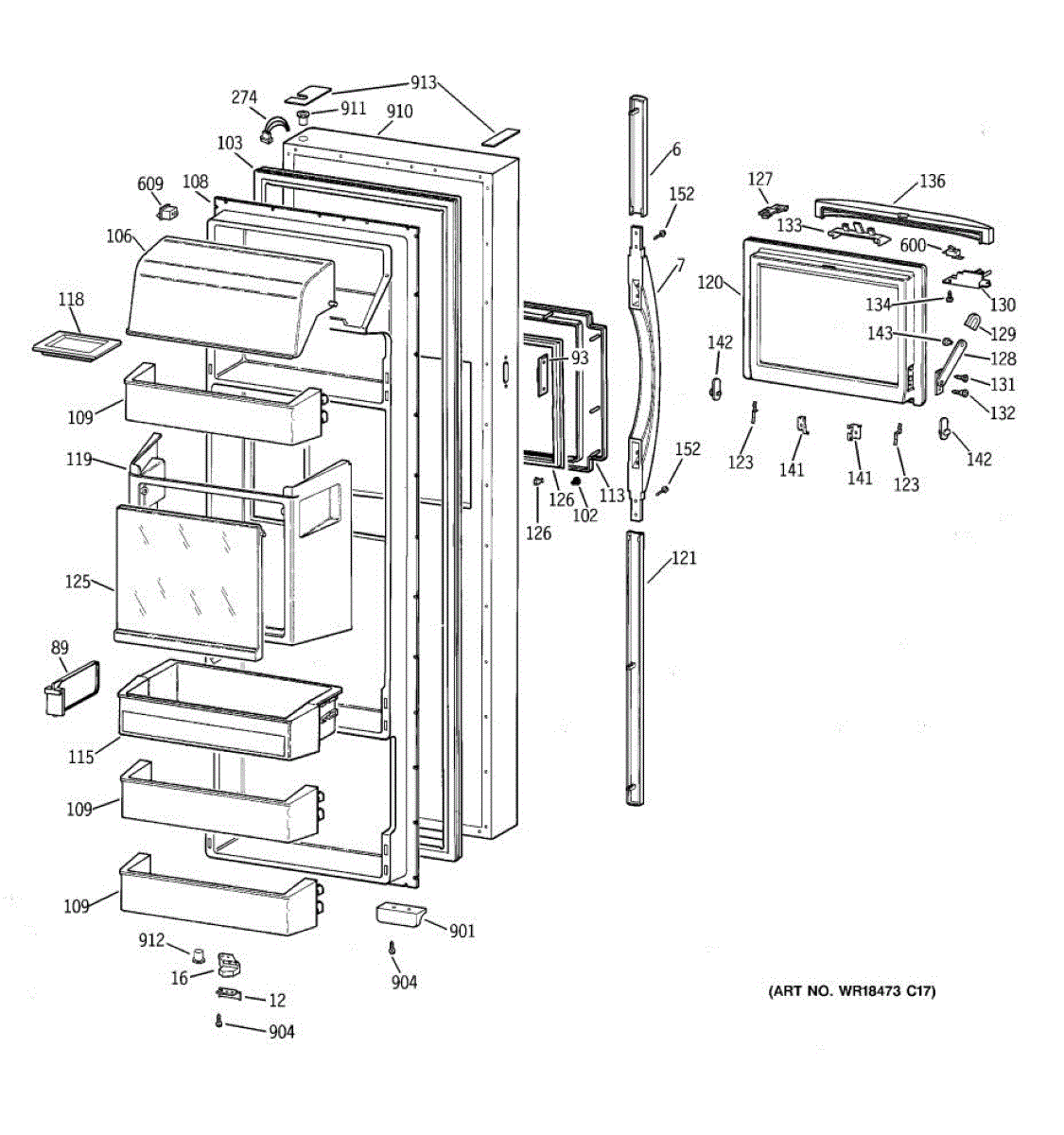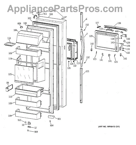 Parts for Ge TFG28ZFCEWH: 02 - Fresh Food Door Parts