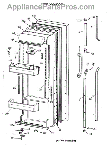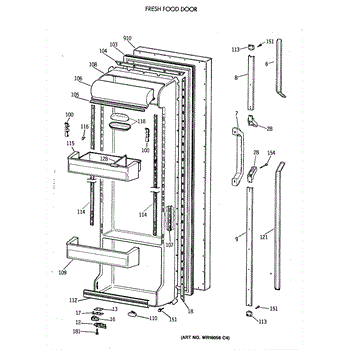 Parts for Ge TFH22PRXABB: 02 - Fresh Food Door Parts