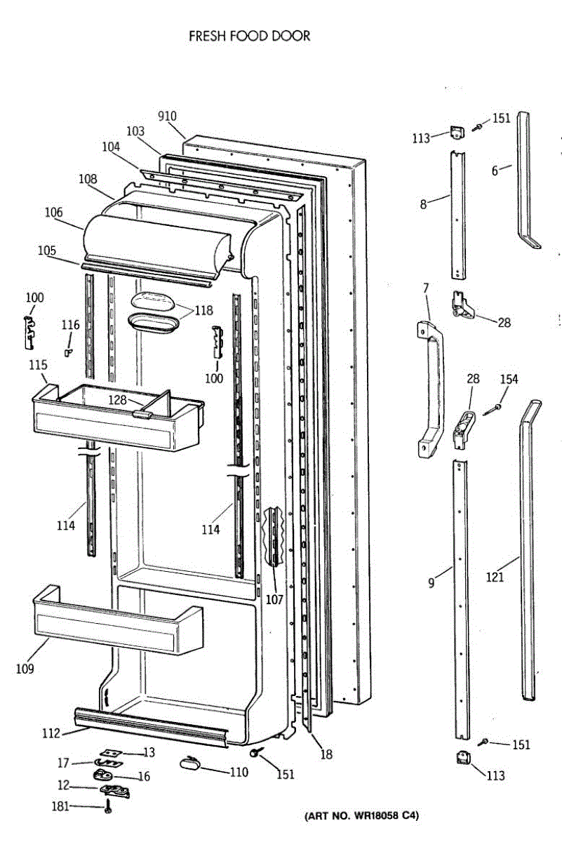 Parts for Ge TFH24PRXABB: 02 - Fresh Food Door Parts