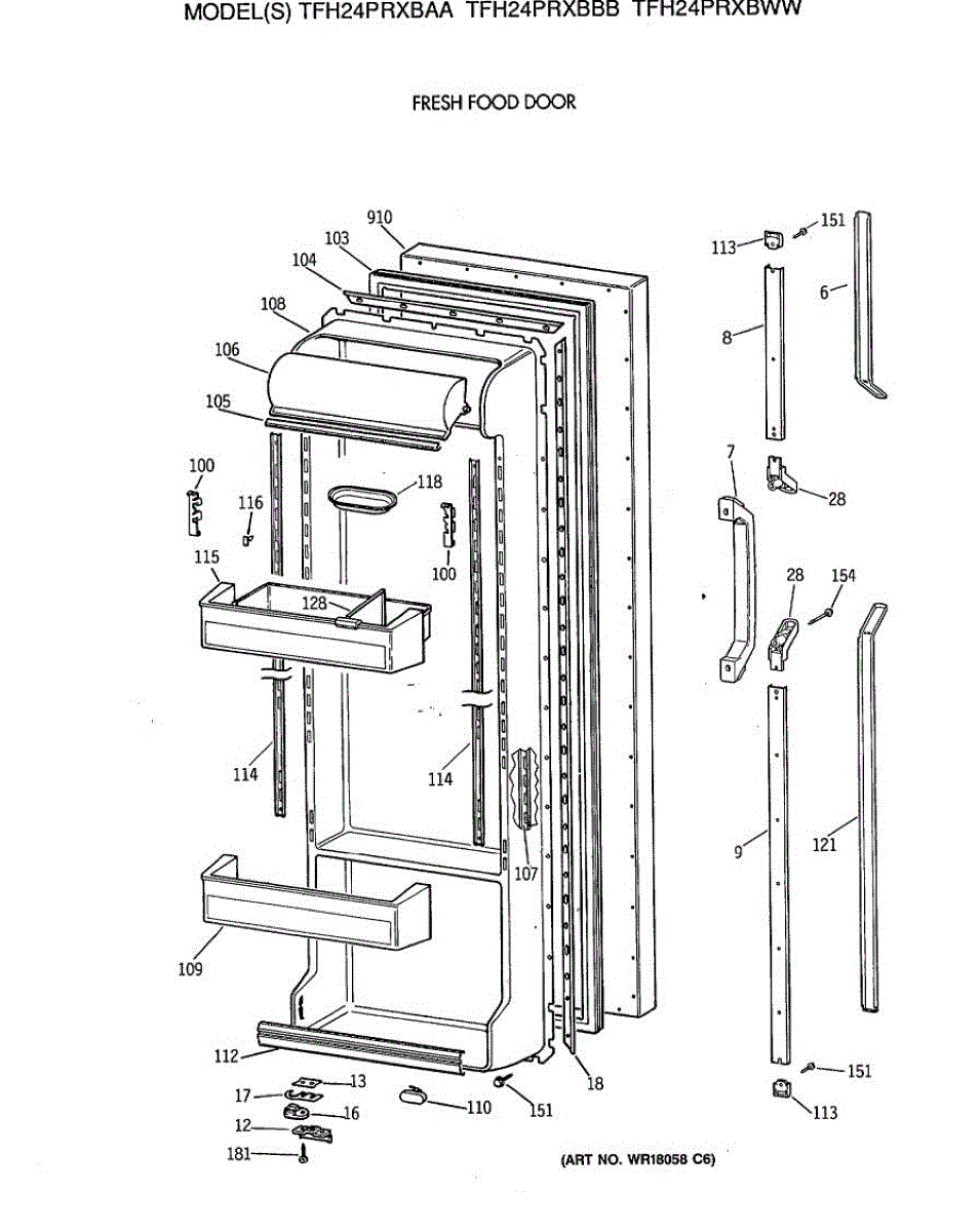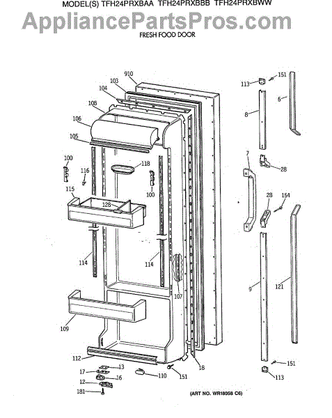 Parts for Ge TFH24PRXBAA: 02 - Fresh Food Door Parts