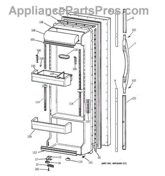 Parts for Ge TFJ22PRBAAA: 02 - Fresh Food Door Parts
