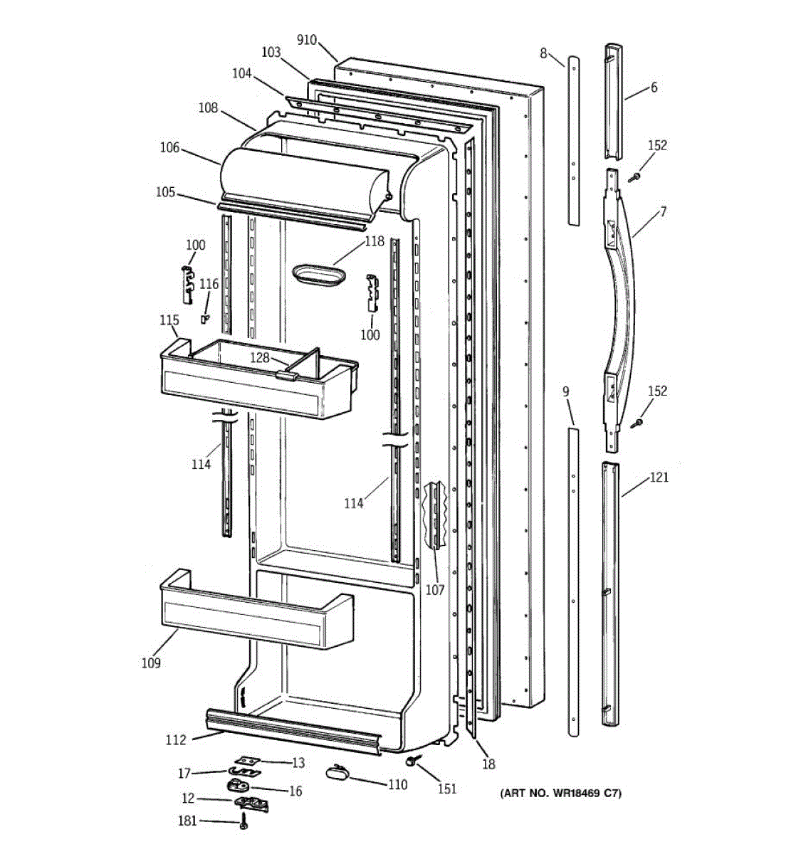 Parts for Ge TFJ22PRBCWW: 02 - Fresh Food Door Parts