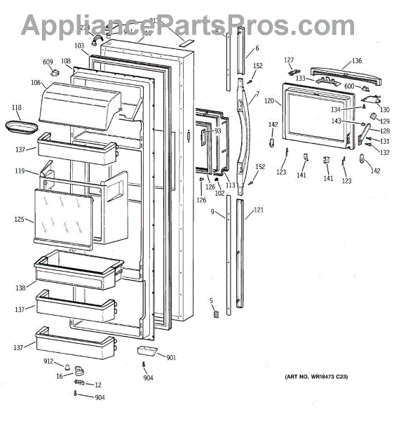 Parts for Ge TFJ28PFDAAA: 02 - Fresh Food Door Parts