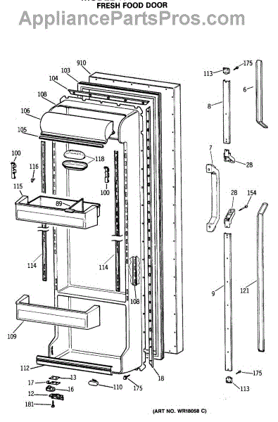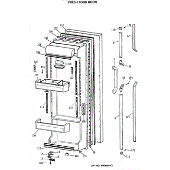 Parts for Ge TFK22PRSCAA: 02 - Fresh Food Door Parts