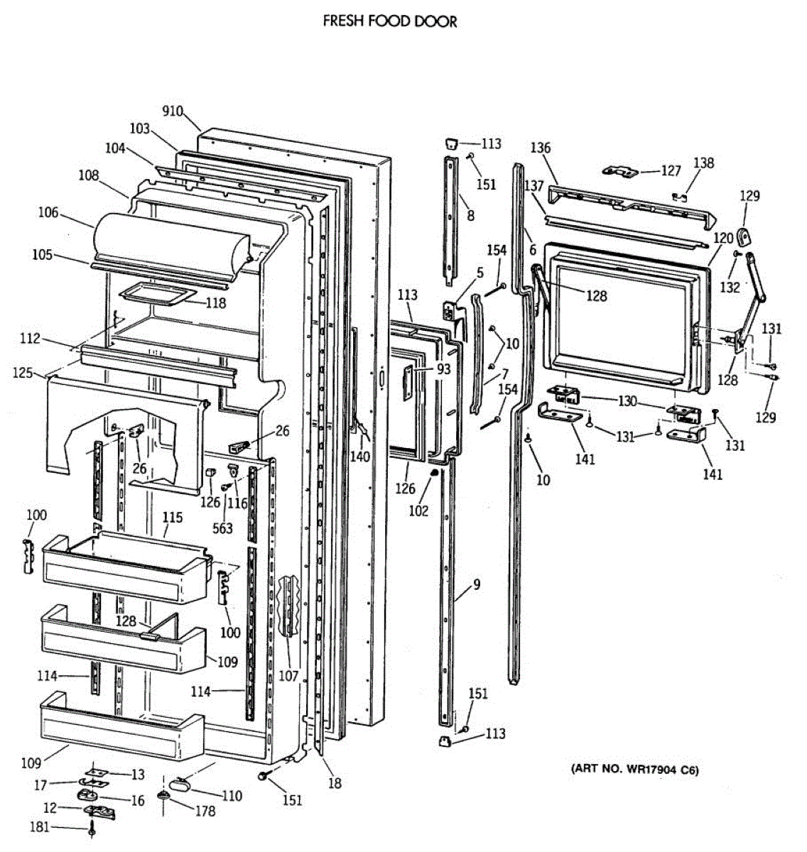 Parts for Ge TFK24ZFXAAA: 02 - Fresh Food Door Parts