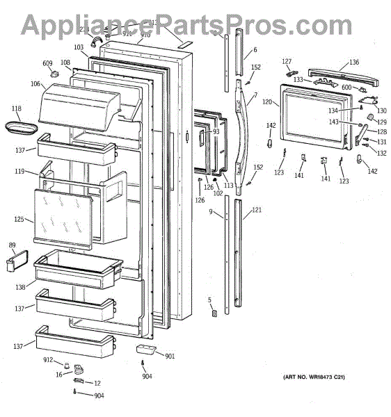 Parts for Ge TFK28PFDAAA: 02 - Fresh Food Door Parts