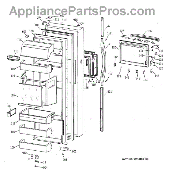 Parts for Ge TFK28ZFBAAA: 02 - Fresh Food Door Parts