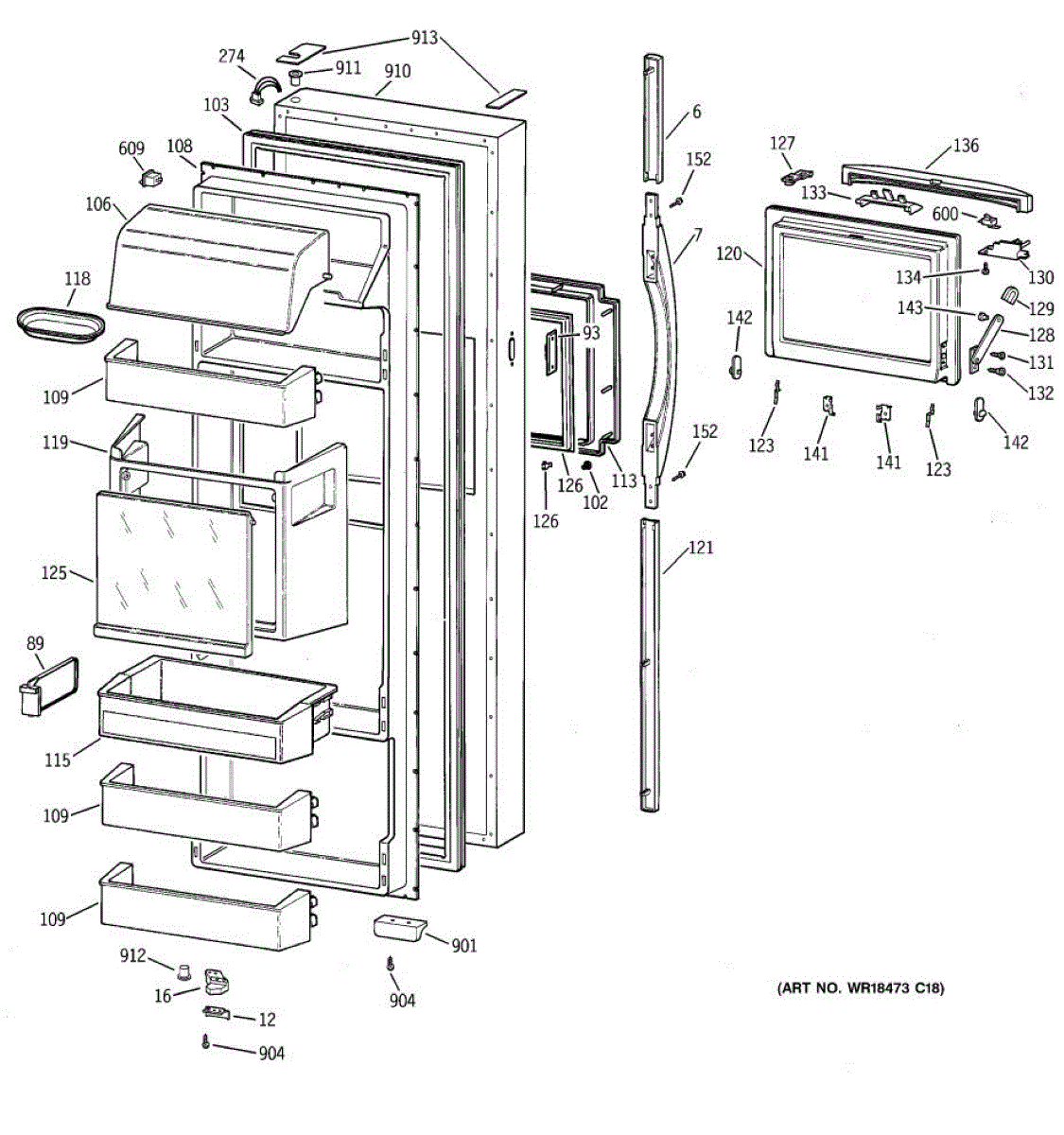 Parts for Ge TFK28ZFBCAA: 02 - Fresh Food Door Parts