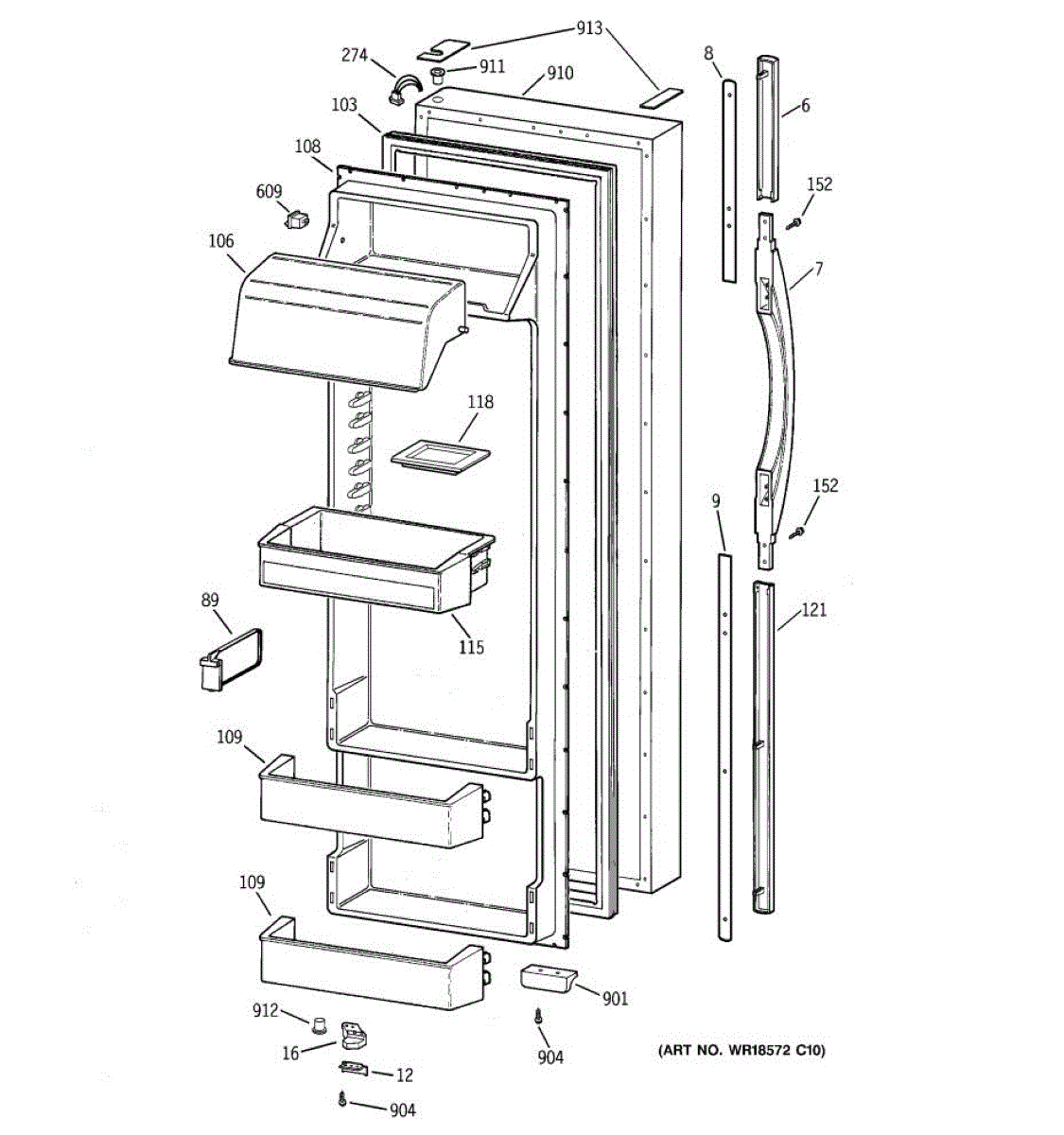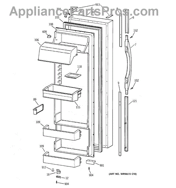 Parts for Ge TFK28ZRBEAA: 02 - Fresh Food Door Parts