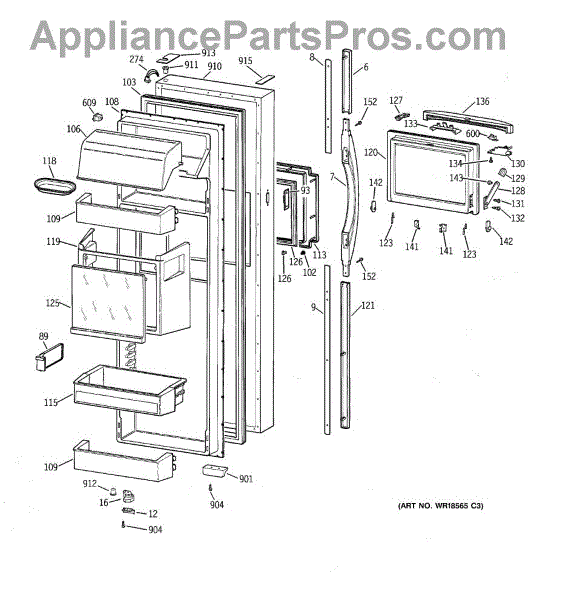 Parts for Ge TFK30PFBAAA: 02 - Fresh Food Door Parts