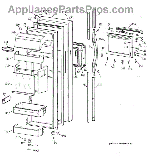 Parts for Ge TFK30PFBBWW: 02 - Fresh Food Door Parts