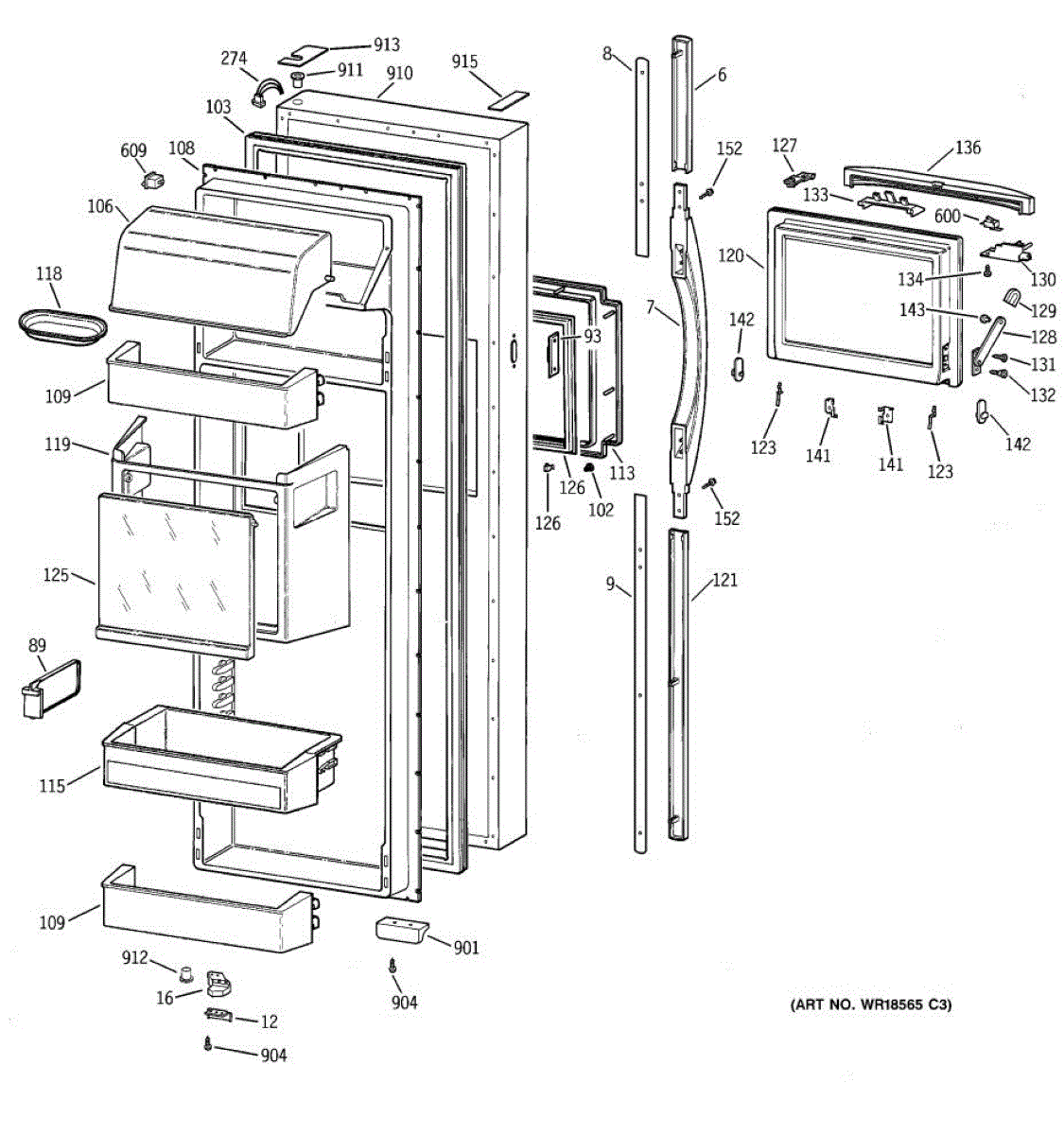 Parts for Ge TFK30PFBCWW: 02 - Fresh Food Door Parts