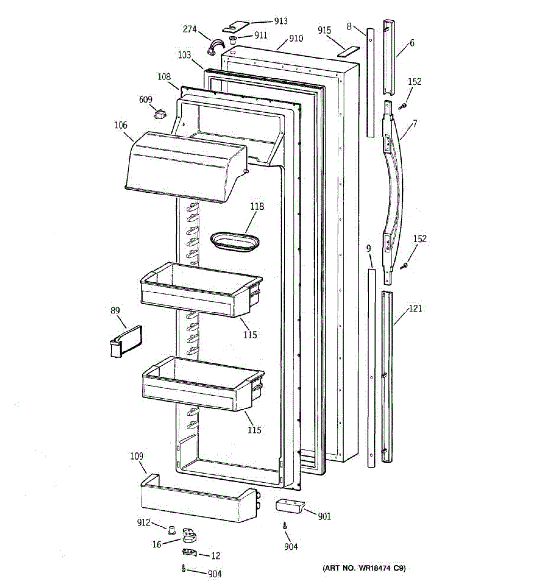 Parts for Ge TFK30PRBCAA: 02 - Fresh Food Door Parts