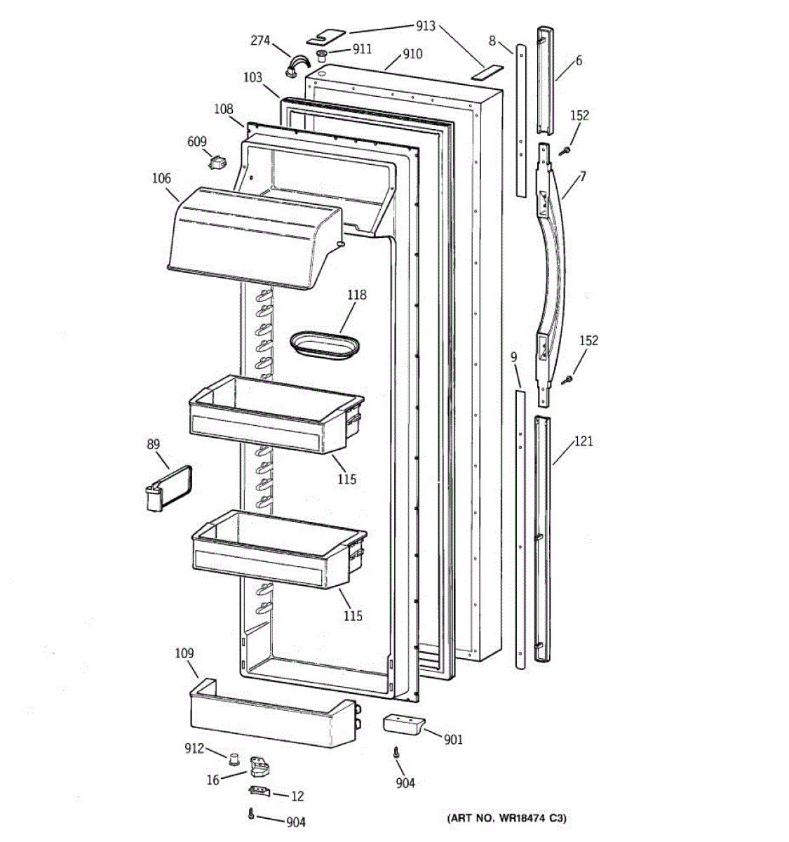 Parts for Ge TFK30PRBGAA: 02 - Fresh Food Door Parts