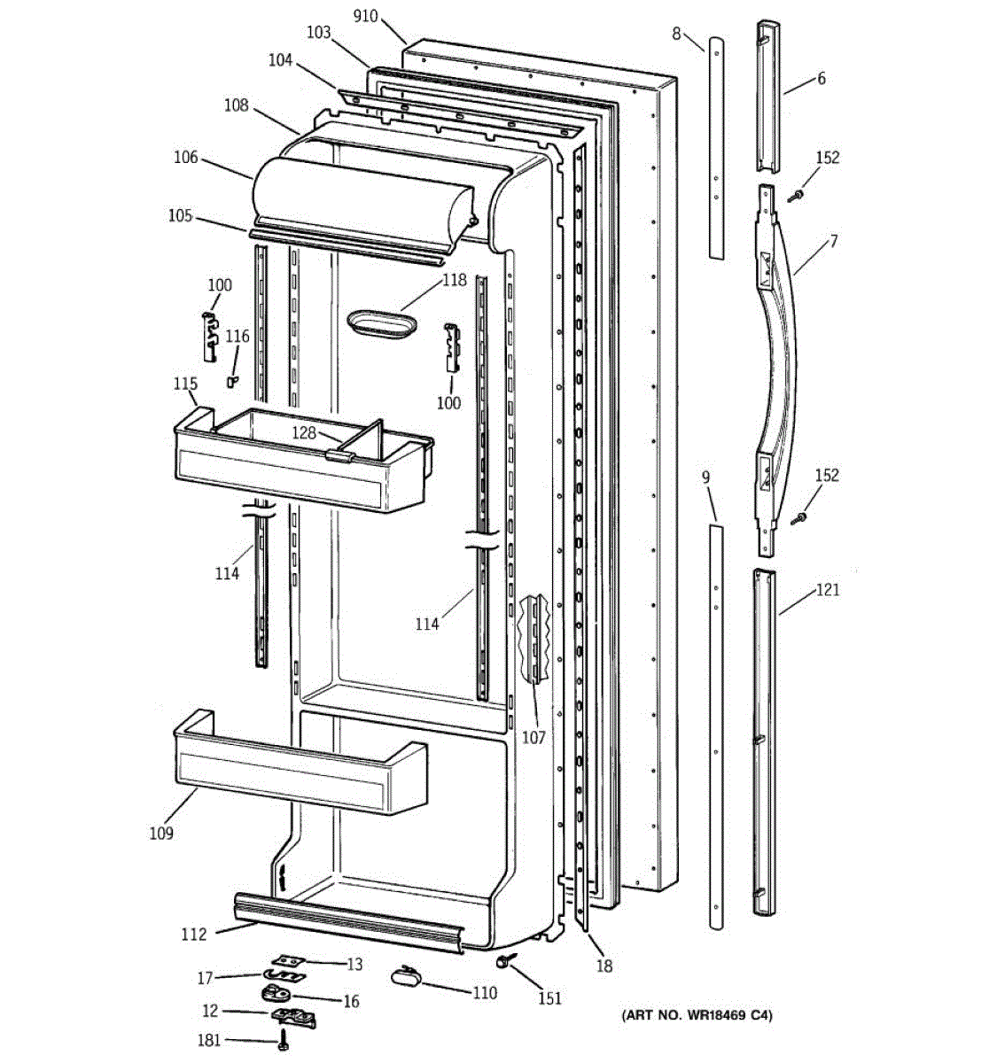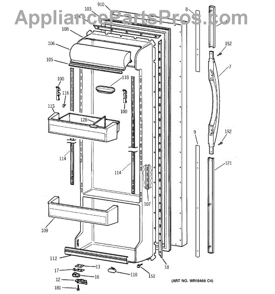 Parts for Ge TFM22PRBEWW: 02 - Fresh Food Door Parts