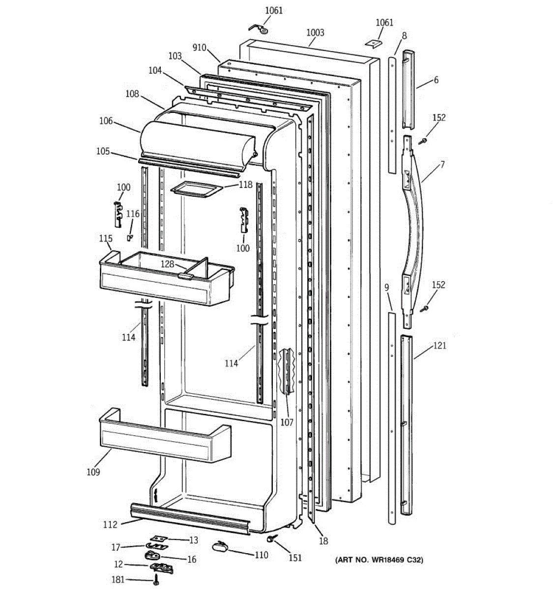 Parts for Ge TFM25CRBEBS: 02 - Fresh Food Door Parts