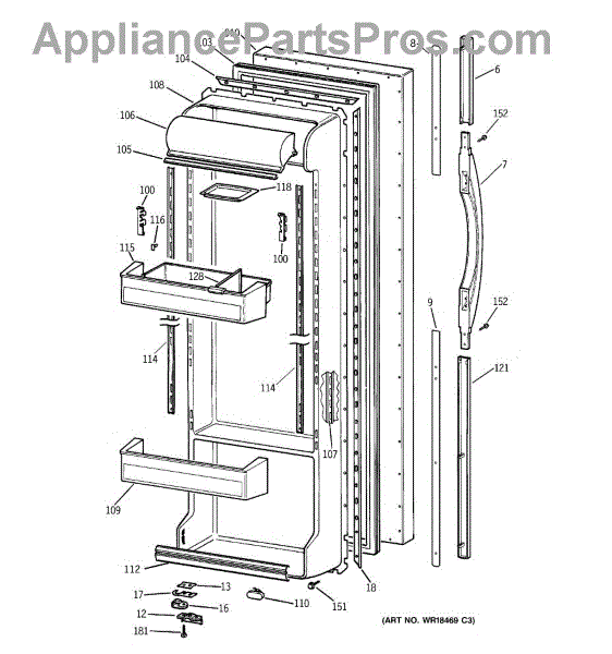 Parts for Ge TFM25PRBCAA: 02 - Fresh Food Door Parts
