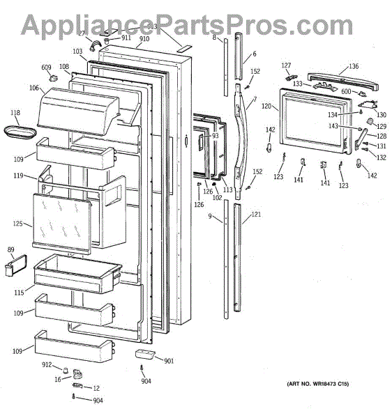 Parts for Ge TFM28PFBEWW: 02 - Fresh Food Door Parts