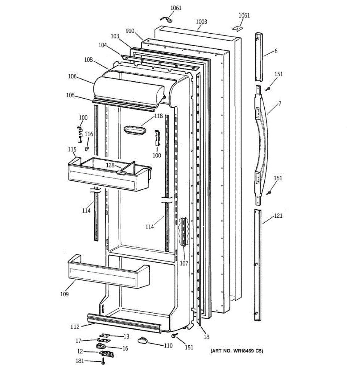 Parts for Ge TFS22PPBCBS: 02 - Fresh Food Door Parts