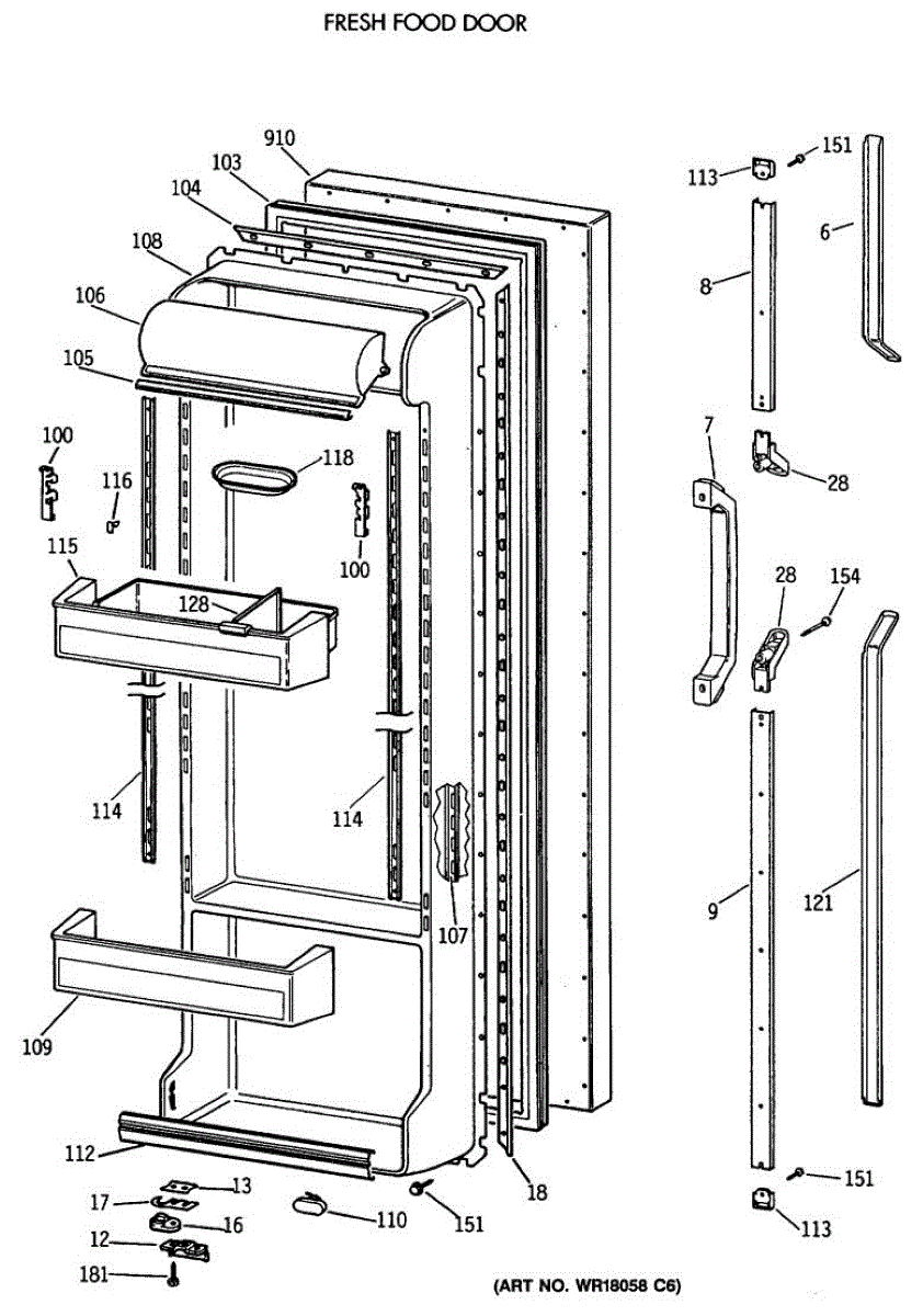 Parts for Ge TFT24PRXAAA: 02 - Fresh Food Door Parts