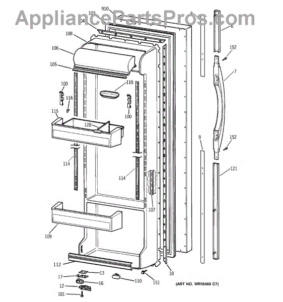 Parts for Ge TFT25PRBEWW: 02 - Fresh Food Door Parts