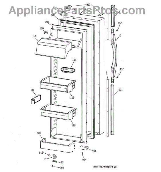 Parts for Ge TFT30PRBCAA: 02 - Fresh Food Door Parts