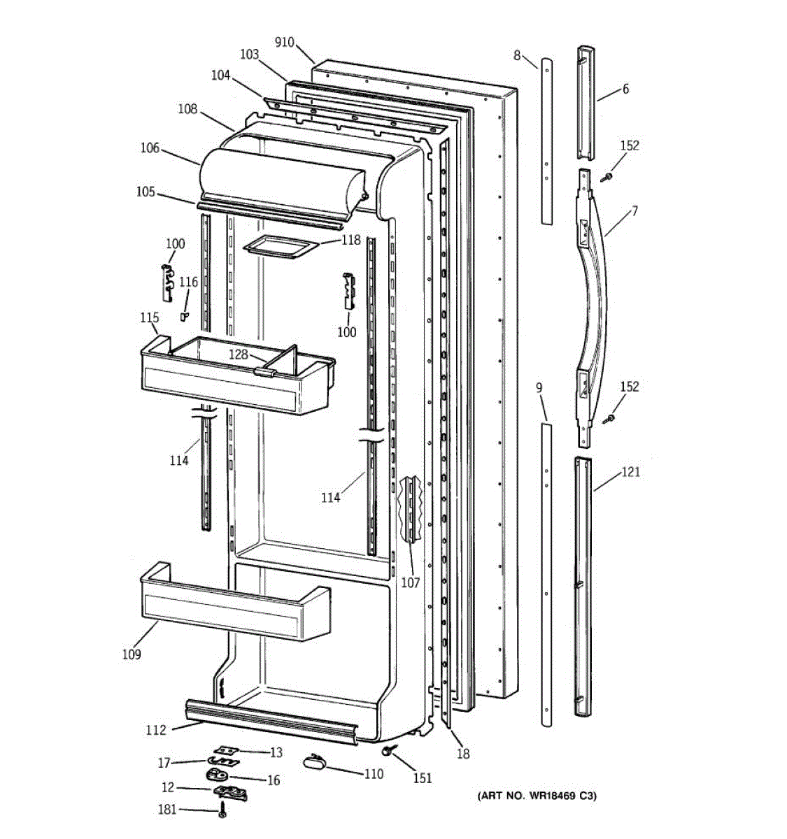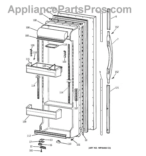 Parts for Ge TFX22CRBCAA: 03 - Fresh Food Door Parts