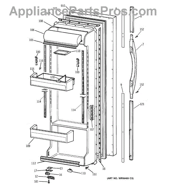 Parts for Ge TFX22CRBEAA: 03 - Fresh Food Door Parts