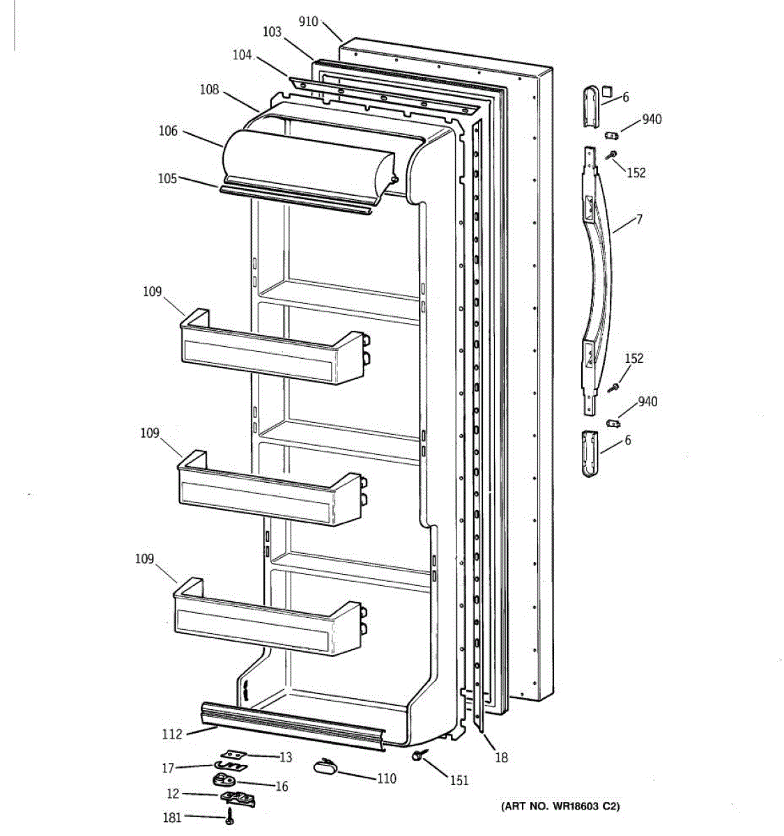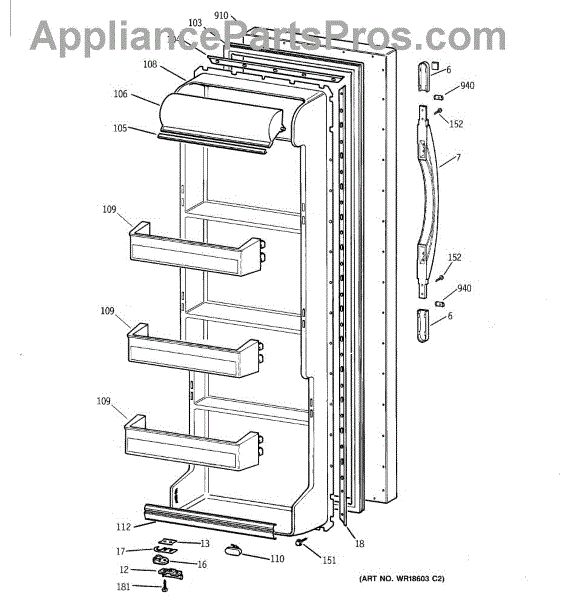 The Door Handle is an OEM part for GE refrigerators. This part provides a secure and comfortable grip for opening and closing the refrigerator door.