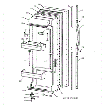 Parts for Ge TFX22PRBABB: 02 - Fresh Food Door Parts