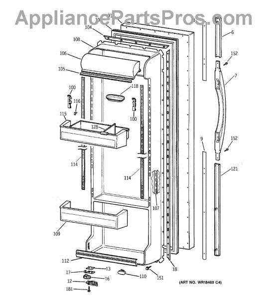Parts for Ge TFX22PRBBWW: 02 - Fresh Food Door Parts