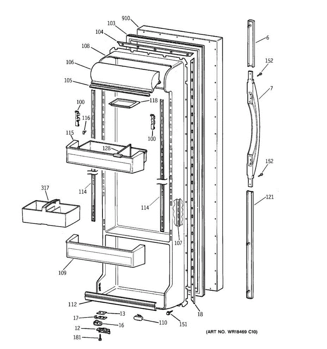 Parts for Ge TFX22VRBCAA: 03 - Fresh Food Door Parts