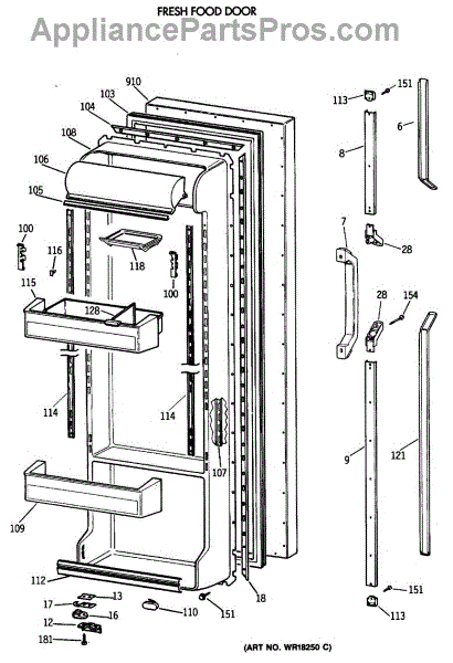 Parts for Ge TFX24CRXAAA: 02 - Fresh Food Door Parts