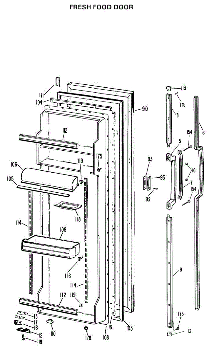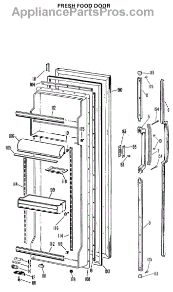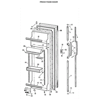 Parts for Ge TFX24EKB: 02 - Fresh Food Door Parts