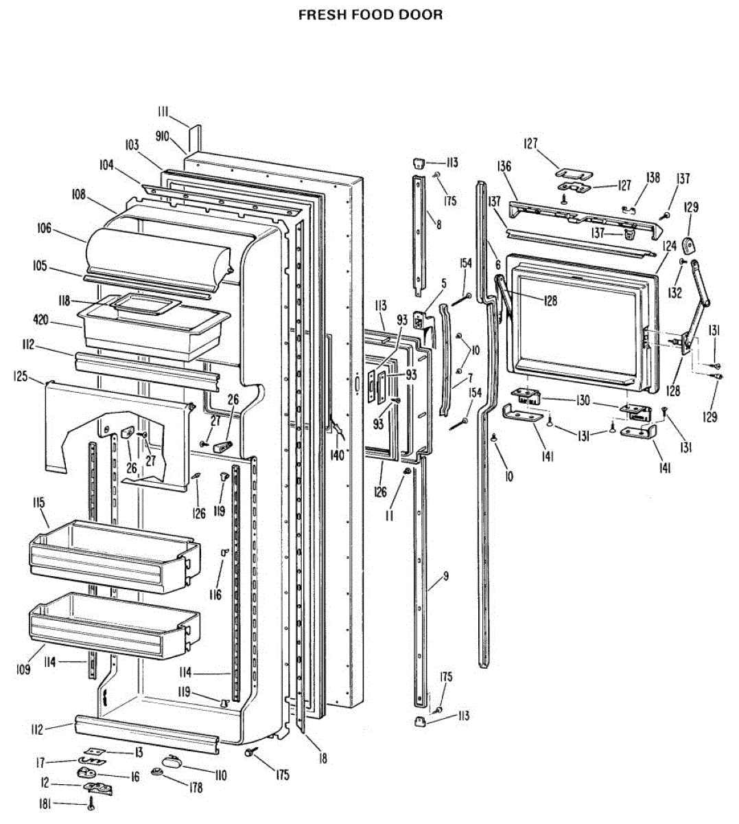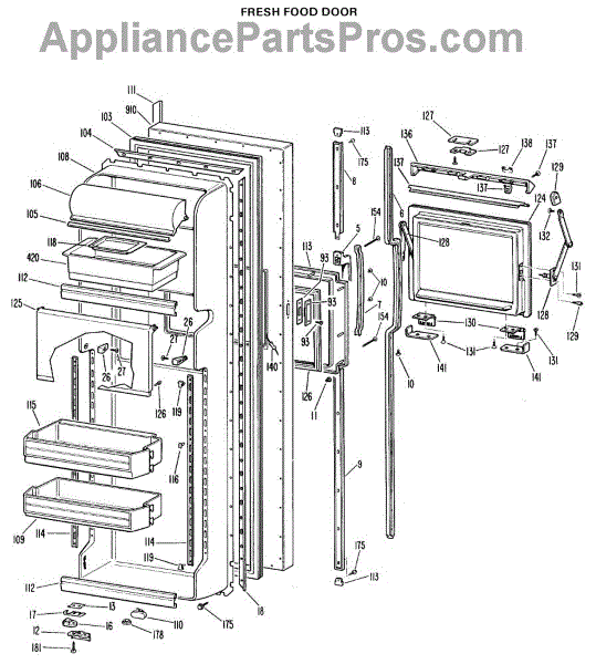 Parts for Ge TFX24FKB: 02 - Fresh Food Door Parts
