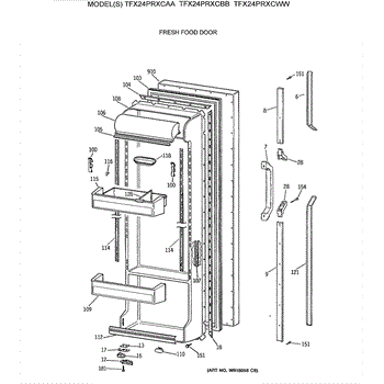Parts for Ge TFX24PRXCBB: 02 - Fresh Food Door Parts
